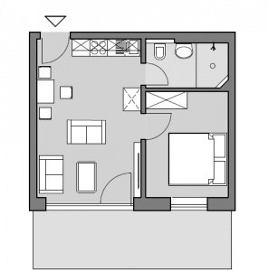 1 Wohn-/Schlafzimmer