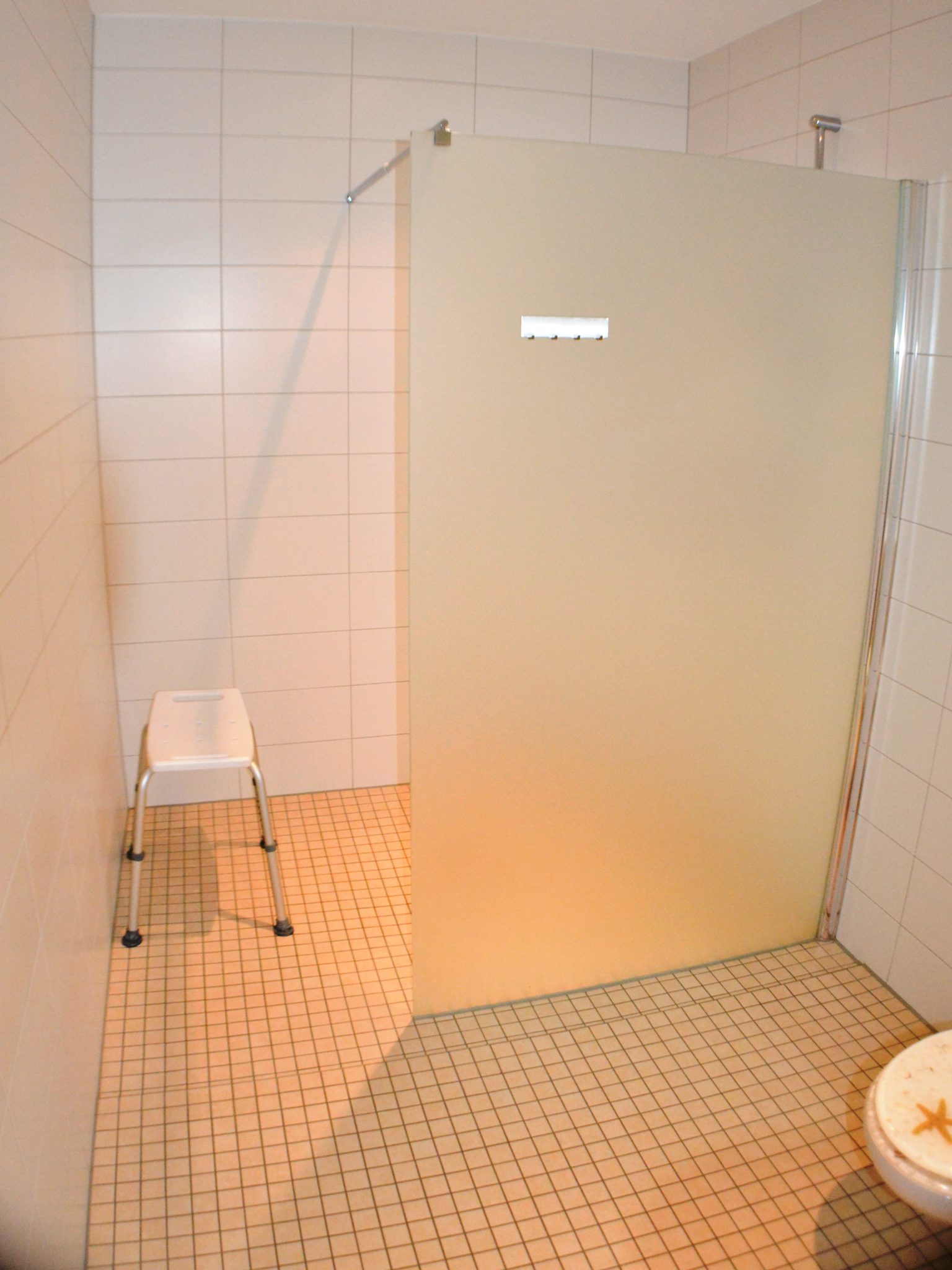 Das geräumige Bad ist ausgestattet mit einer ebenerdigen Dusche. Waschbecken und WC sind auch für Rollstuhlfahrer geeignet. Weiterhin gehören ein Fön sowie ein großer Spiegel zur Ausstattung. Bettwäsche ist im Mietpreis enthalten.