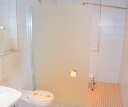 Im Schlafzimmer steht ein Doppelbett. Hierbei handelt es sich um ein Boxspringbett in Hotelzimmerqualität. Es gibt keine sogenannte Besucherritze. Außerdem gibt es ein Einzelbett. Bettwäsche ist im Mietpreis enthalten. Es gibt einen geräumigen Kleiderschrank, hier können die für einen Erholsamen Urlaub am Ostseestrand nötigen Kleidungsstücke problemlos untergebracht werden. Das geräumige Bad ist ausgestattet mit einer ebenerdigen Dusche. Waschbecken und WC sind auch für Rollstuhlfahrer geeignet. Weiterhin gehören ein Föhn sowie ein großer Spiegel zur Ausstattung.